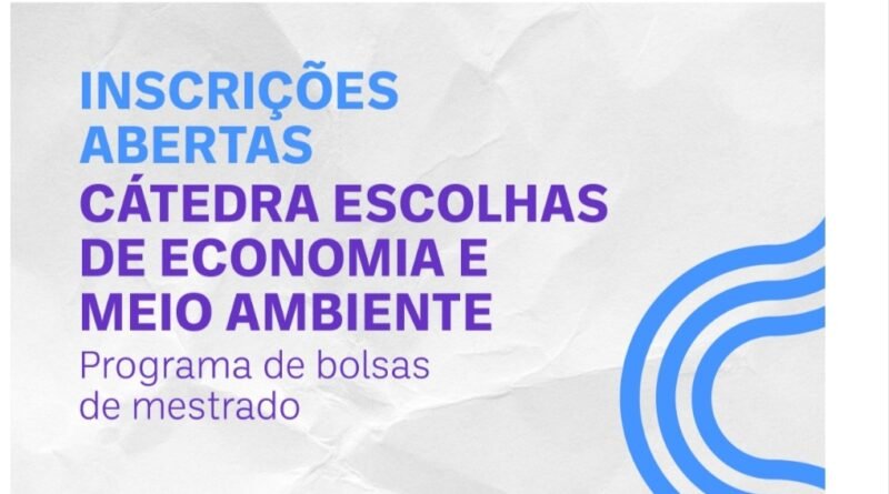 Estão abertas as inscrições para o novo edital da Cátedra Escolhas de Economia e Meio Ambiente. De 27 de março a 28 de maio, mestrandas e mestrandos interessados em pesquisar o desenvolvimento socioeconômico e a sua relação com o meio ambiente podem acessar o site do Instituto Escolhas (escolhas.org) e conferir no edital como pleitear uma das bolsas do programa em 2023.