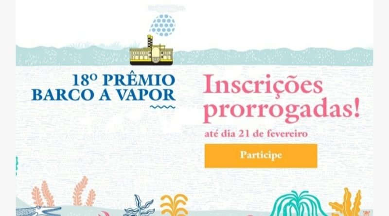 Inscrições para o Prêmio Barco a Vapor 2022 são prorrogadas até 21 de fevereiro