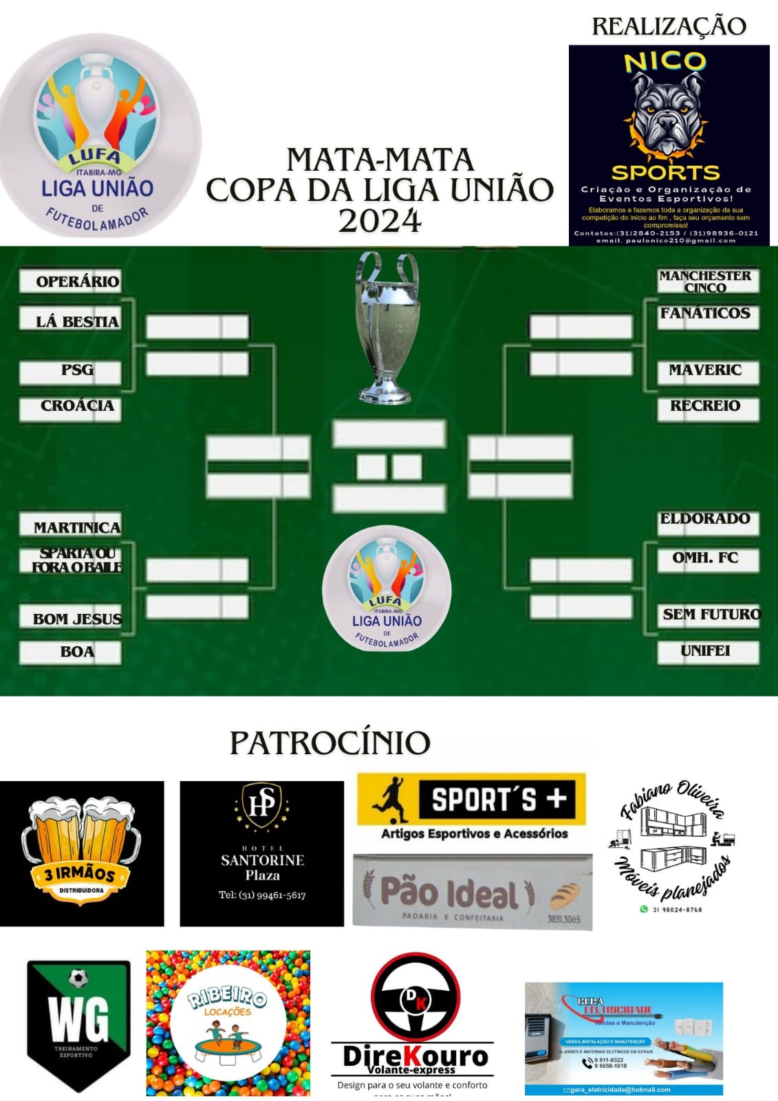Foi realizado na noite de ontem, terça-feira o sorteio e o chaveamento da Copa da Liga União que entra na fase de mata-mata com dois jogos, as equipes se jogam em casa e fora, está valendo o critério de pontuação, a equipe de melhor campanha decide em casa. Se continuar em igualdade a decisão vai para as penalidades máximas.