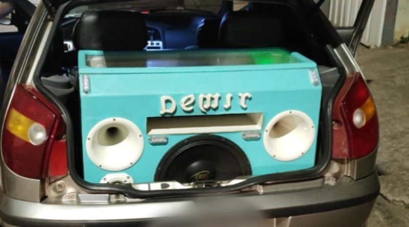 Após denúncias anônimas informando que um veículo Fiat Palio, de cor cinza, estaria transitando com som em volume excessivo, perturbando a tranquilidade dos moradores, a Polícia Militar realizou patrulhamento na região e conseguiu localizar o automóvel.
