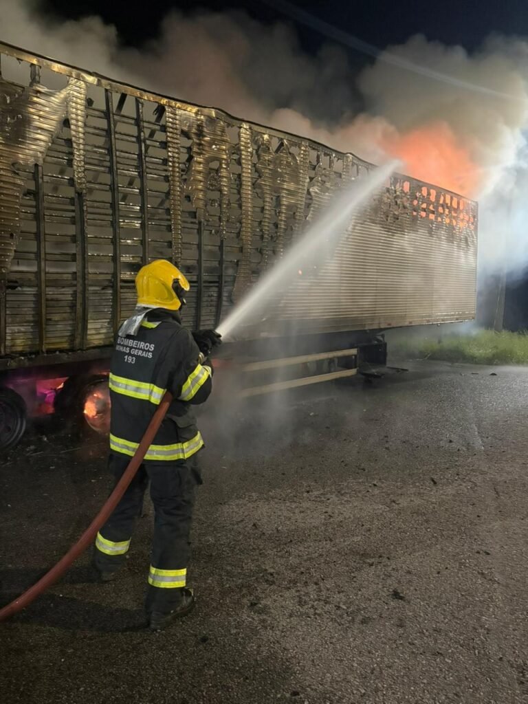 O Corpo de Bombeiros Militar de Minas Gerais atendeu, na noite deste sábado (07), por volta das 23h49, uma ocorrência de incêndio em uma carreta estacionada na área do posto da Polícia Rodoviária Federal (PRF), às margens da BR-381, no km 926, nas proximidades do município de Itapeva, no Sul de Minas.