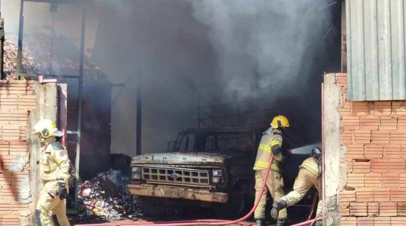 JANAÚBA: CORPO DE BOMBEIROS ATENDE OCORRÊNCIA DE INCÊNDIO EM GALPÃO DE RECICLÁVEIS