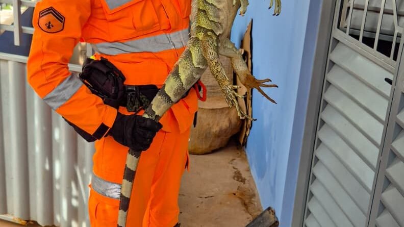 Ao chegarem, os militares constataram tratar-se de uma iguana de grande porte, medindo cerca de 1,80 m de comprimento.