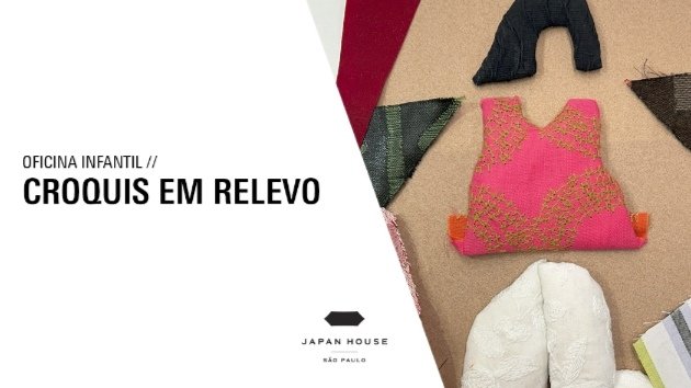 A segunda atividade, realizada no dia 16 de junho, com sessões às 11h e às 14h, é a Oficina Croquis em Relevo. Aqui as crianças são convidadas a trabalhar o esboço de uma peça de roupa, pensando não só em suas características visuais, como formato e cor, mas também na textura da peça. Inspirada na técnica tradicional japonesa Oshi-e, que consiste em produzir peças em relevo envolvidas por tecidos, a criançada poderá criar pequenas obras de arte por meio dos croquis. A participação acontece de forma presencial, mediante retirada de senha 30 minutos antes da atividade.