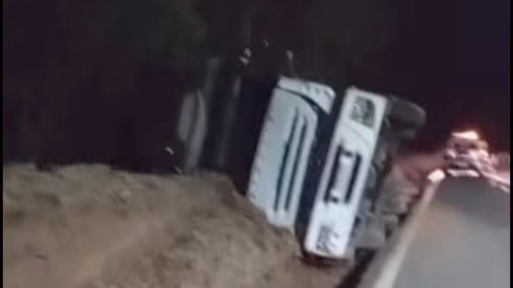 No final da noite de ontem, domingo (26) de outubro de 2025, uma carreta tombou em frente a praça de pedágio da concessionária Nova 381, responsável por administrar a “rodovia da morte”.