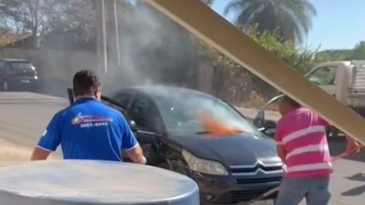 Ao perceber a situação, duas pessoas rapidamente combateram as chamas e o veículo não pegou fogo por completo.