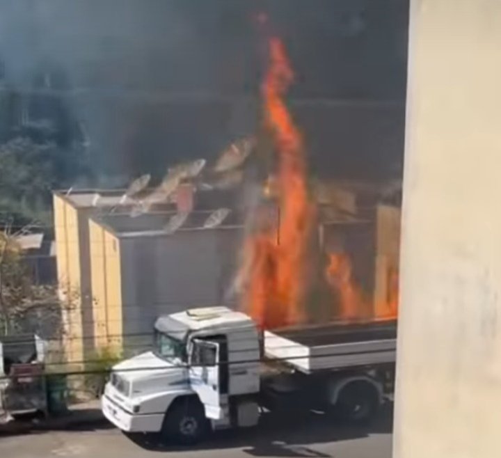 No meio da tarde de hoje, um incêndio quase causou a destruição de uma carreta no bairro Vale do Sol.