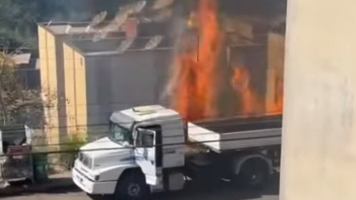 No meio da tarde de hoje, um incêndio quase causou a destruição de uma carreta no bairro Vale do Sol.