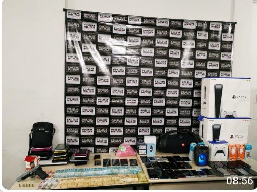 Por fim, lograram êxito na localização de mais três envolvidos, bem como na recuperação dos produtos abaixo descritos e na apreensão de uma arma de fogo e munições, sendo todos devidamente encaminhados à polícia civil para demais medidas cabíveis.