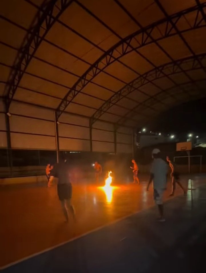 Jogo de futebol com quadra e bola “pegando fogo” repercute nas redes sociais em Barão de Cocais
