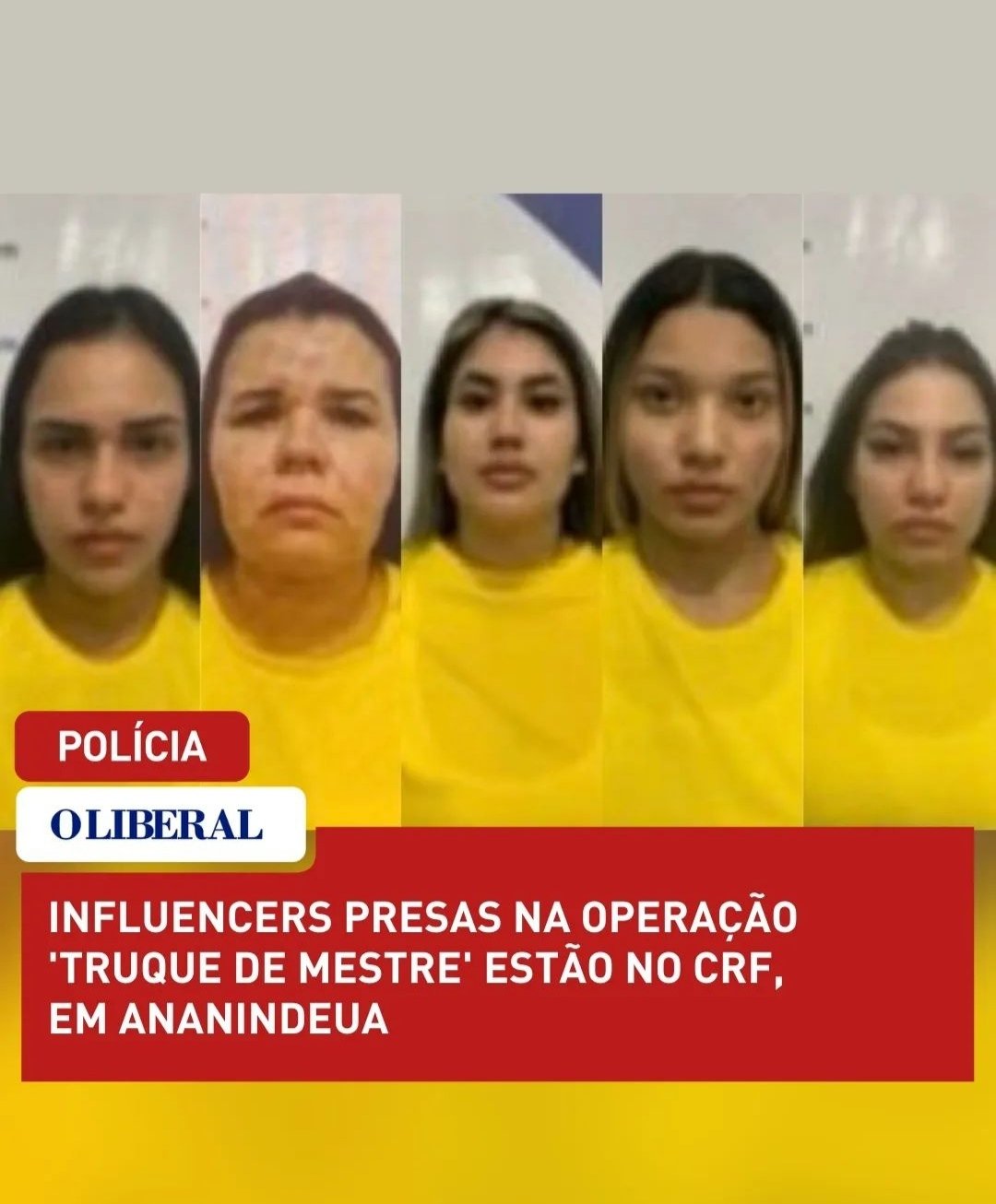 Alvos da operação “Truque de Mestre”, deflagrada pela Polícia Civil do Pará nesta segunda-feira (18/12), Emilly Almeida da Penha, Géssica Meireles Alves, Jamily de Pinho Ipiranga, Ianne Raquel Andrade dos Santos e Suzana Karla Melo de Araújo (mãe da influencer Noelle Maria de Araújo Lopes), já estão no Centro de Recuperação Feminino (CRF), em Ananindeua, na Região Metropolitana de Belém.