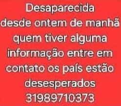Se você ver a jovem, souber onde ela está pode estar ligando imediatamente para os familiares ou para a Polícia Militar número 190.