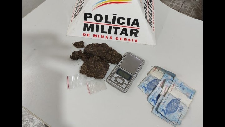 Chegando na resistência o pai do indivíduo autorizou a entrada da PM, foi feita buscas em seu quarto onde foi encontrada grande quantidade de maconha, uma balança de precisão e oito reais em moeda corrente.