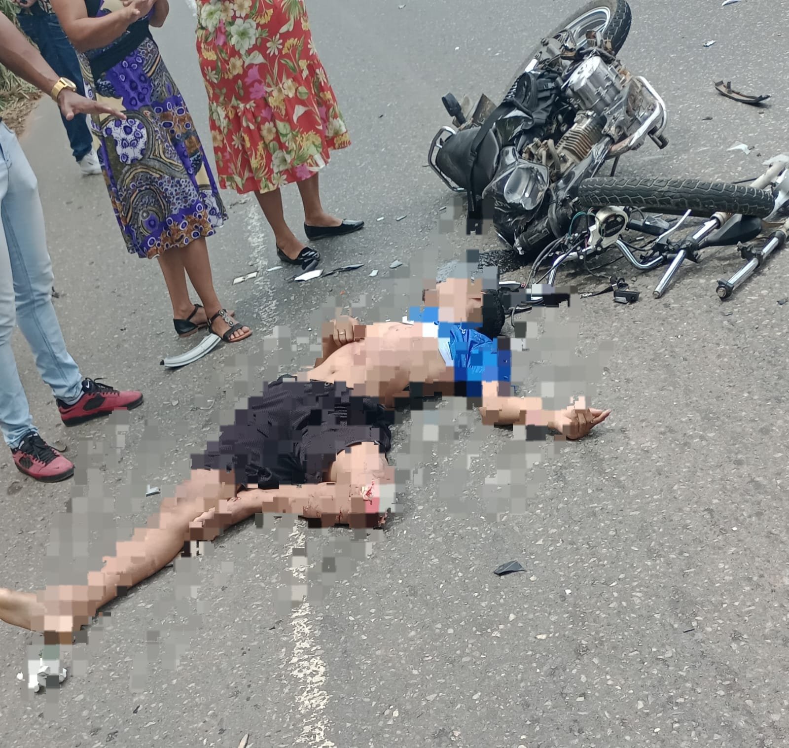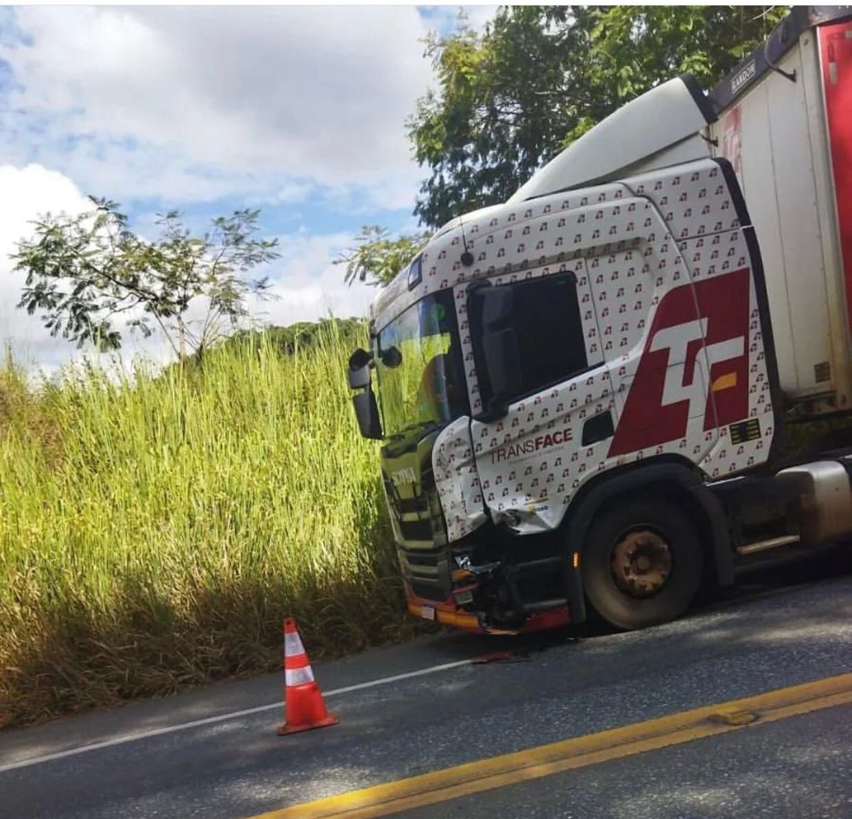 O acidente foi entre uma motocicleta Honda de cor preta e uma carreta Scania estilo baú de cor branca.