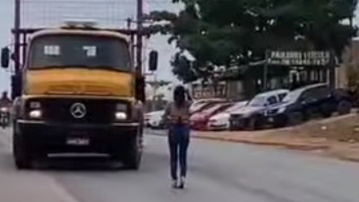 Os veículos, principalmente os caminhões, pararam e se desviaram da moça que estava aos prantos.