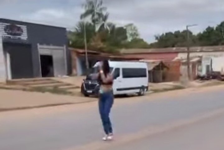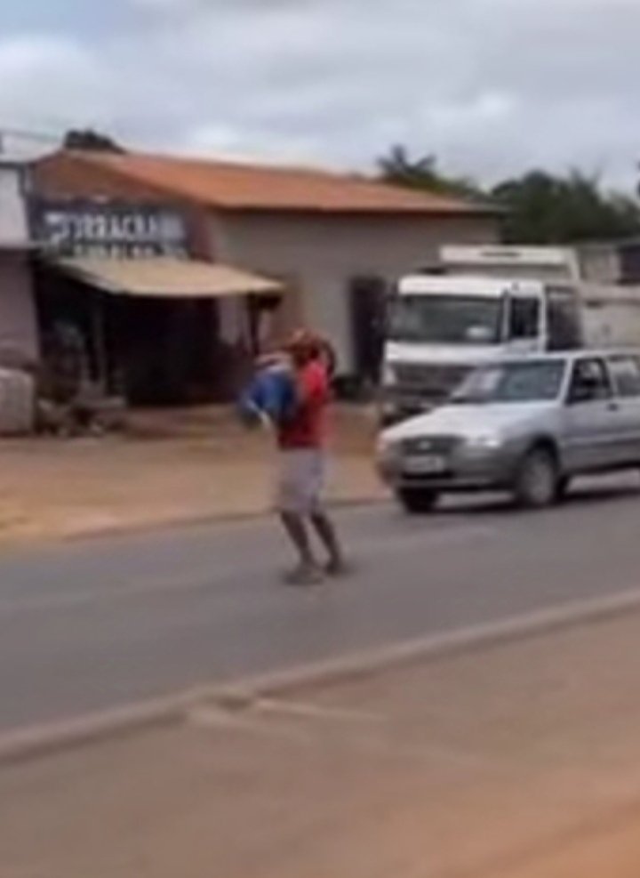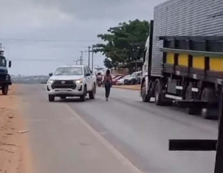 Uma jovem desesperada tentando se jogar na frente dos veículos que passavam pela BR-222, rodovia federal que corta o município.