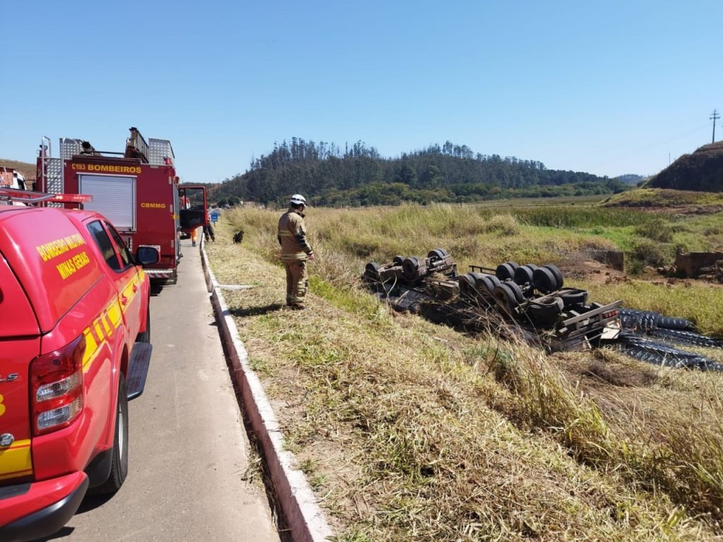 JUIZ DE FORA: Capotamento de carreta mobiliza Corpo de Bombeiros na BR-267