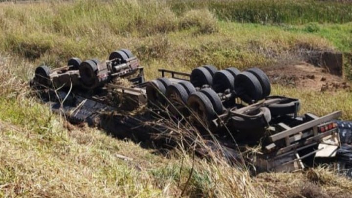 Na manhã desta sexta-feira (22), por volta das 10h00min, o Corpo de Bombeiros Militar atendeu ocorrência de capotamento de carreta na rodovia BR-267, altura do km 119.