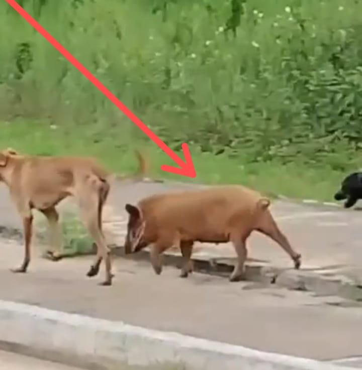 E começou a circular hoje pelas redes sociais, um vídeo do Tik-Tok muito interessante, não sabemos de onde saiu esse vídeo, mas nele é possível ver quatro cachorros da raça Caramelo escoltando um pequeno leitão como vocês podem ver nas imagens.
