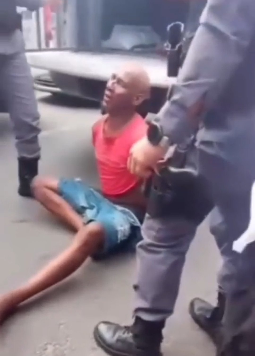 Após ser capturado em flagrante delito o homem disse que estava errado, chorou, esperneou e pediu perdão, nisso sua calça caiu.