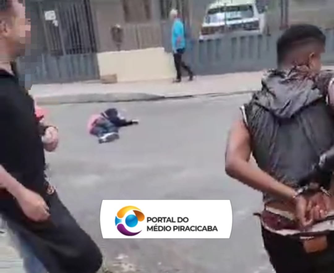 Um meliante morreu e o outro já está preso. A ocorrência se encontra em andamento.