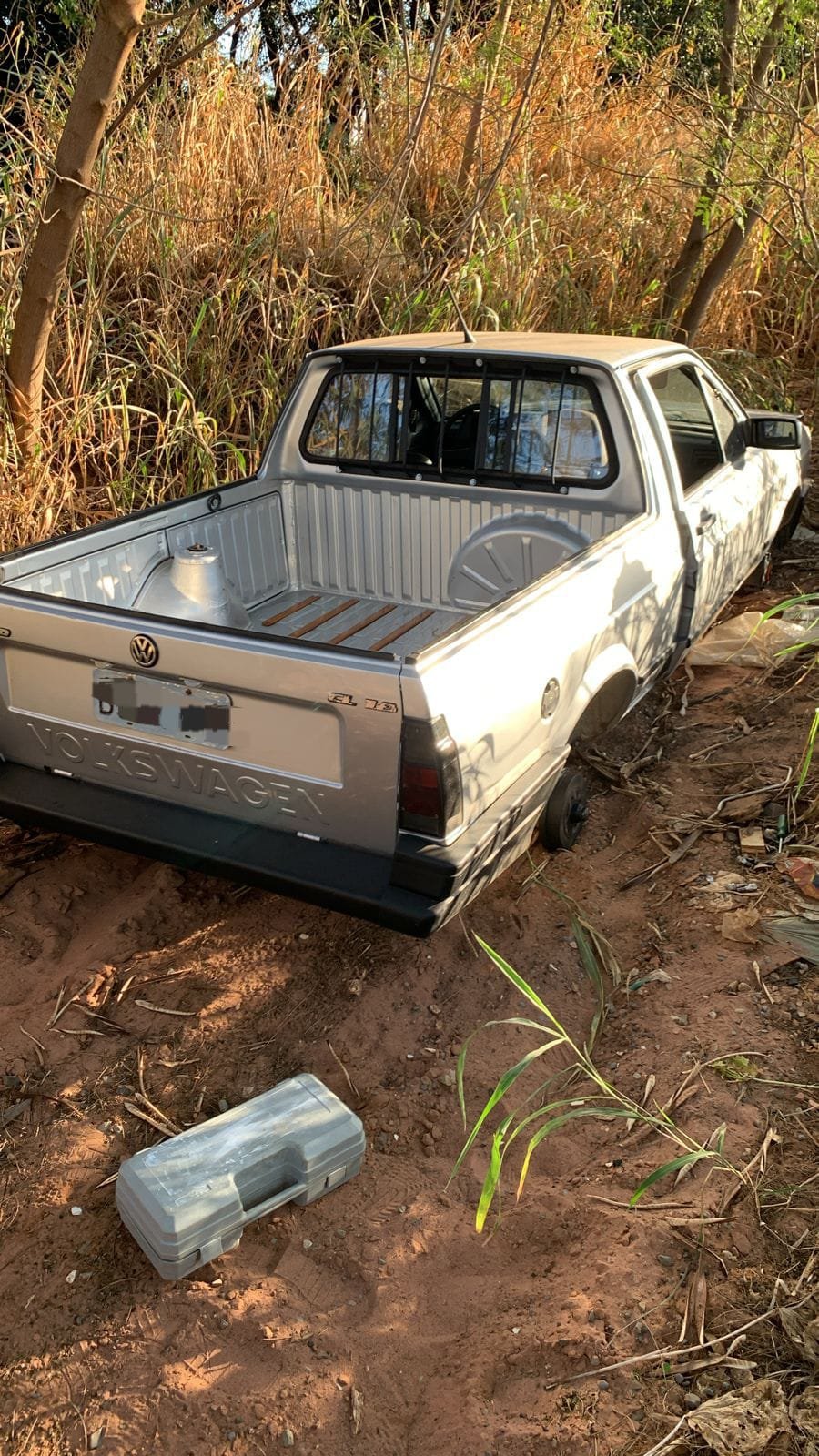Na data de ontem, (12) houve um furto de um veículo onde dois elementos que haviam furtado um veículo Volkswagen Saveiro já estavam em uma localidade rural desmontando o veículo