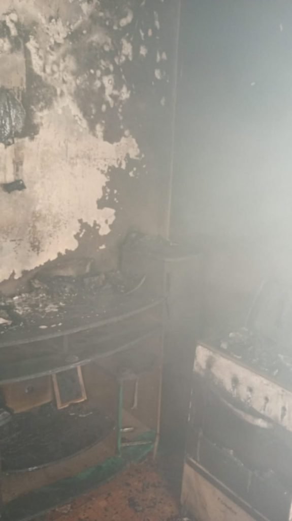 Na chegada da guarnição ao local o incêndio havia sido controlado por populares, sendo constatado que ele ficou concentrado na cozinha do imóvel. Vários eletrodomésticos e utensílios foram destruídos devido a intensidade das chamas.