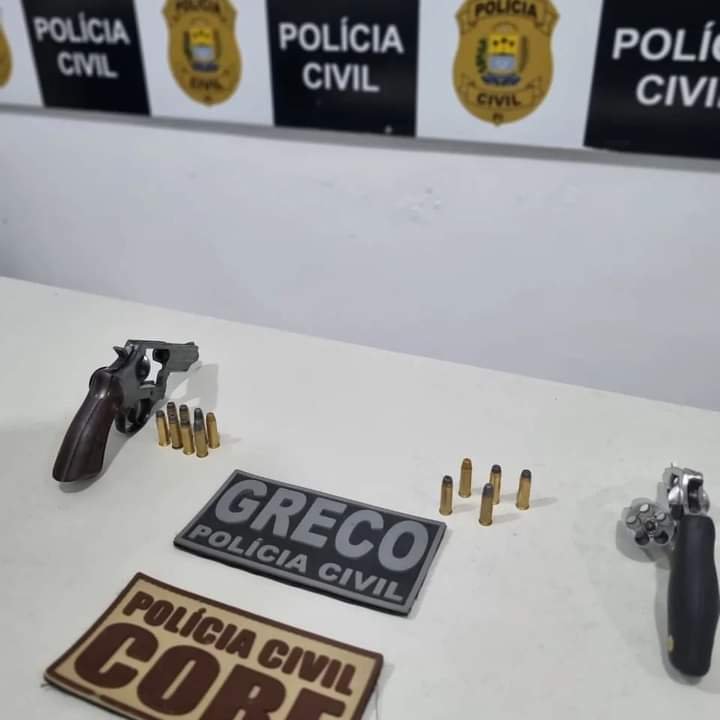 Foi preso LUCAS GABRIEL DA SILVA SANTOS, vulgo ERÊ e apreendido o adolescente JGAS de 17 anos. Os investigados foram surpreendidos em deslocamento a fim de realizar um roubo quando foram abordados em um veículo e foram apreendidos dois revólveres calibre 38 e dois aparelhos celulares sendo um roubado.