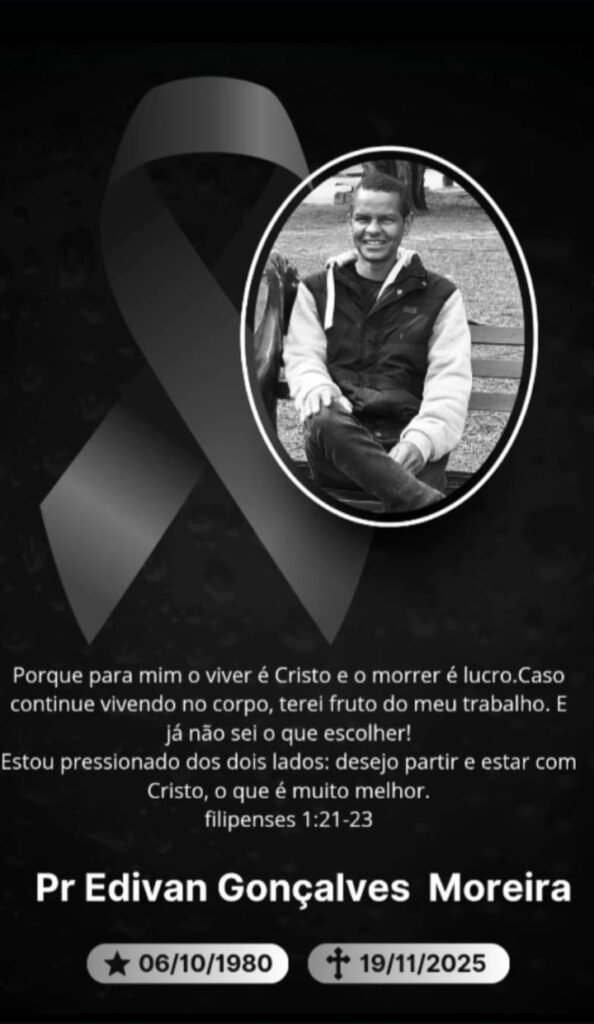 É com profundo sentimento de pesar que informamos o falecimento do Pastor Edivan Gonçalves Moreira.