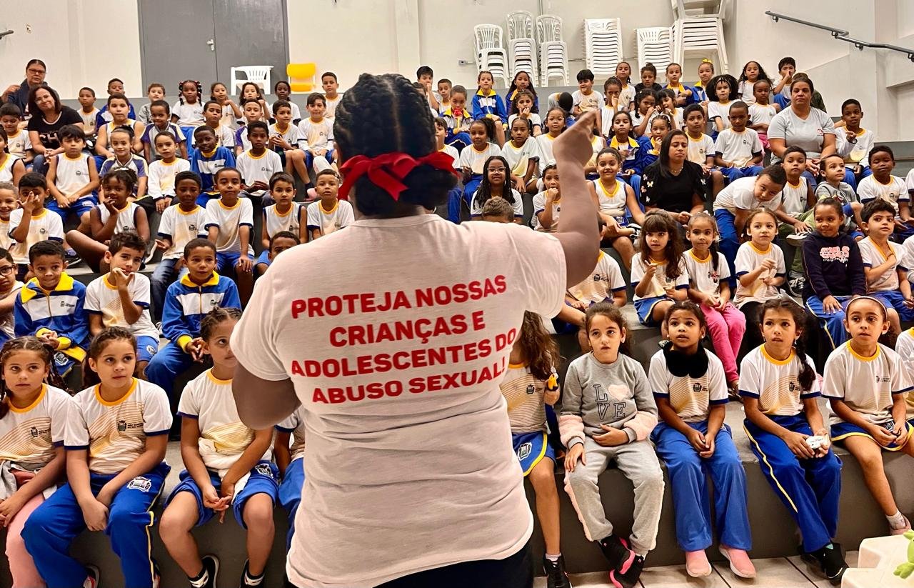 A primeira escola a receber a intervenção foi a Escola de Tempo Integral Maria de Lourdes Duarte Moreira dos Santos que nesta manhã reuniu mais de 350 alunos no teatro da escola. As crianças interagiram em cada momento da peça e receberam informações importantes de como identificar um abusador, inclusive nas redes sociais virtuais.