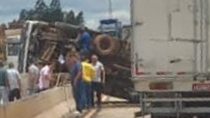 Segunda-feira, 21 de Novembro de 2022. Na subida antes do amigão um caminhão tombou e parou sobre a guarnição que separa as duas pistas da BR-381 ou rodovia da morte.