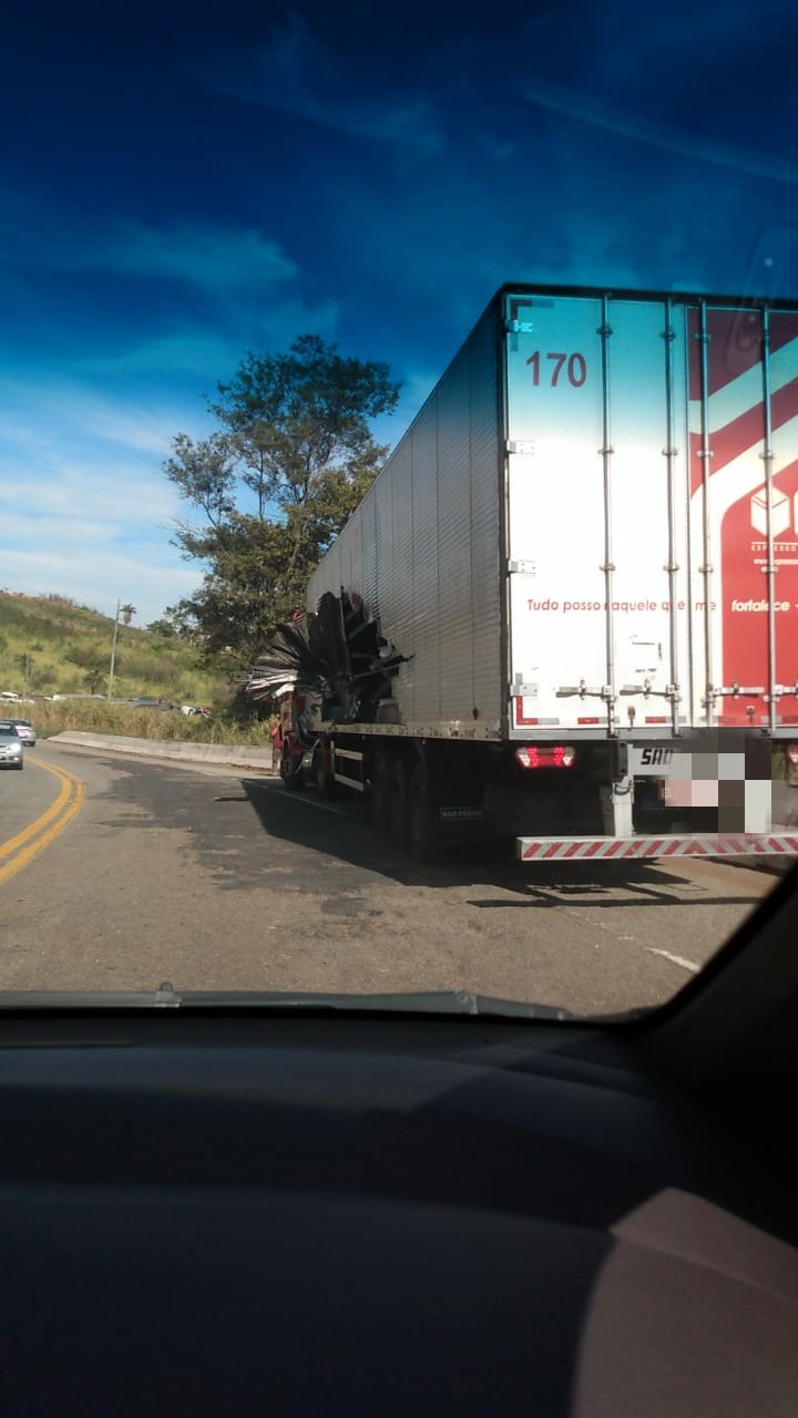 O trânsito está travado no sentido João Monlevade devido ao transbordo da carga.