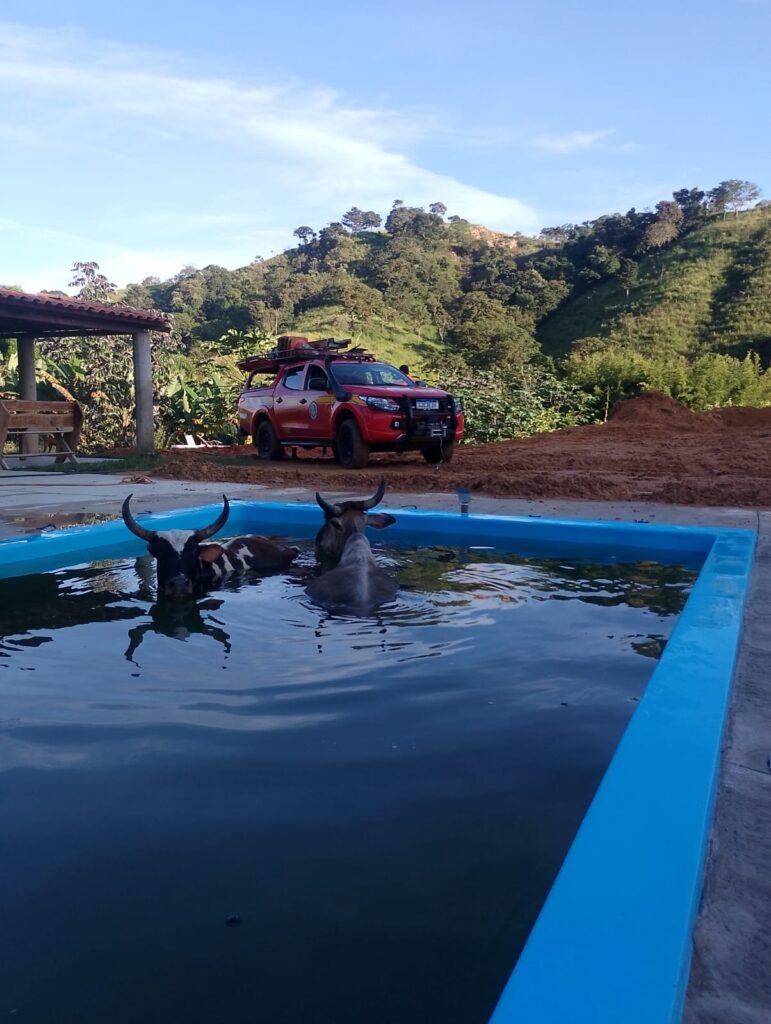 Mais uma ocorrência com vacas… agora em piscina