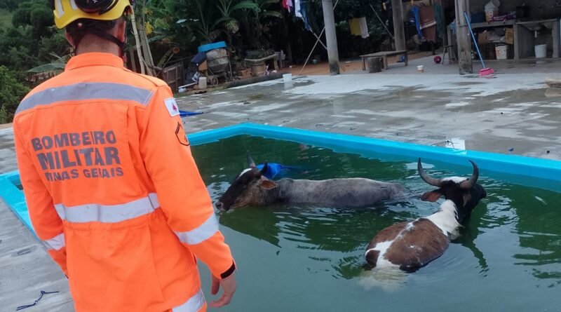 Mais uma ocorrência com vacas… agora em piscina