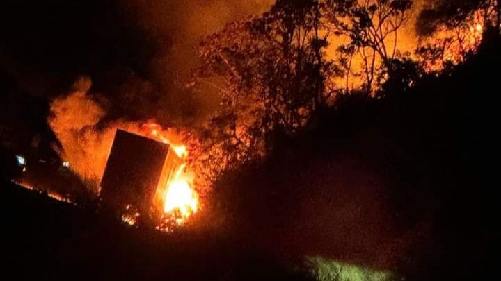 Os militares do Corpo de Bombeiros de Minas Gerais foram acionados por volta de 20:00 horas e encontraram os dois veículos consumidos pelas chamas.