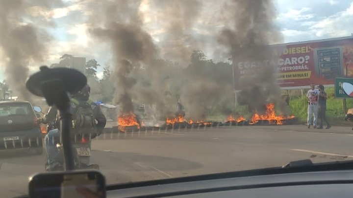 Varios pneus estão sendo queimados na pista, caminhoneiros também estão paralisados como forma de protesto com o resultado das eleições presidenciais.