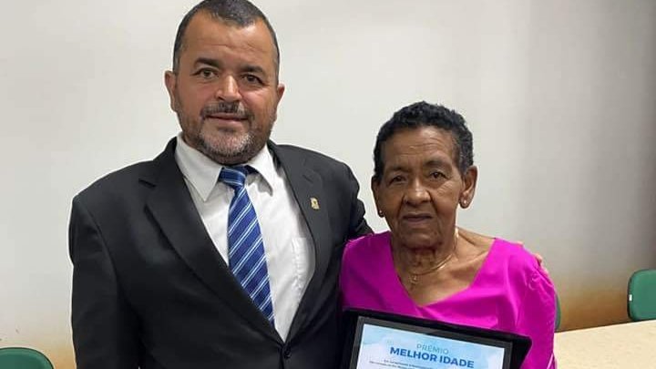 O vereador Marlon Túlio homenageou a Dona Célia com o “Prêmio Melhor Idade”.
