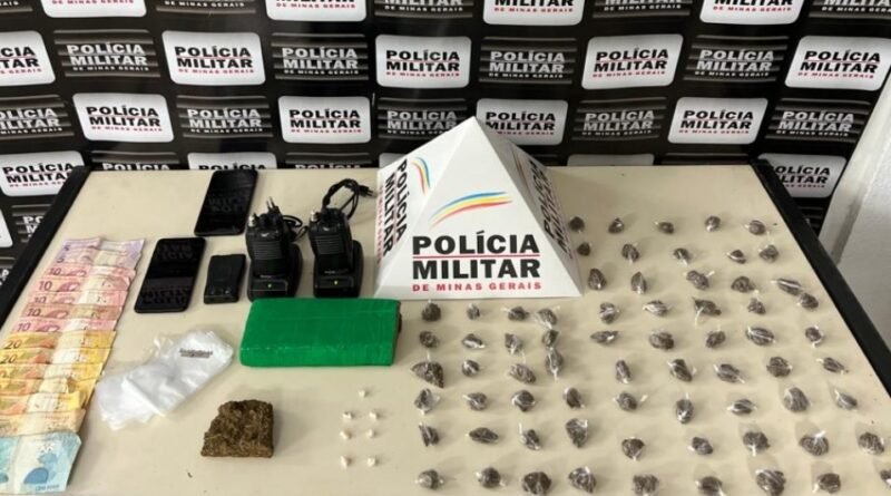 Após buscas pessoais e na residência de um dos infratores, foi localizada grande quantidade de entorpecentes, rádios comunicadores e material para embalar as drogas.