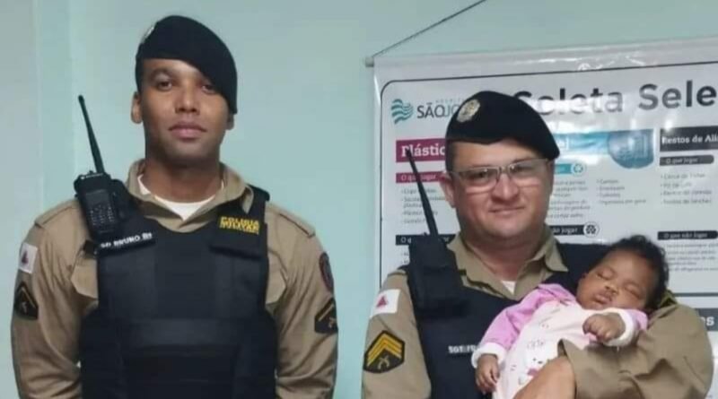 Policiais Militares de Nova Era foram abordados pelos pais de uma criança para socorrer uma bebê de três meses que estava engasgada.