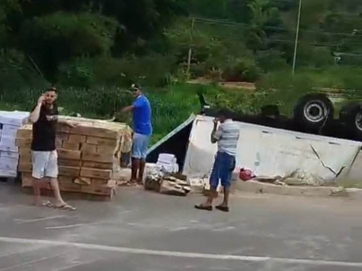 O veículo estava carregado de paçocas, e segundo informações o veículo perdeu os freios, o veículo atravessou a avenida tombando logo a seguir, o baú estourou e a cabine ficou danificada, a carga se espalhou pelo local.