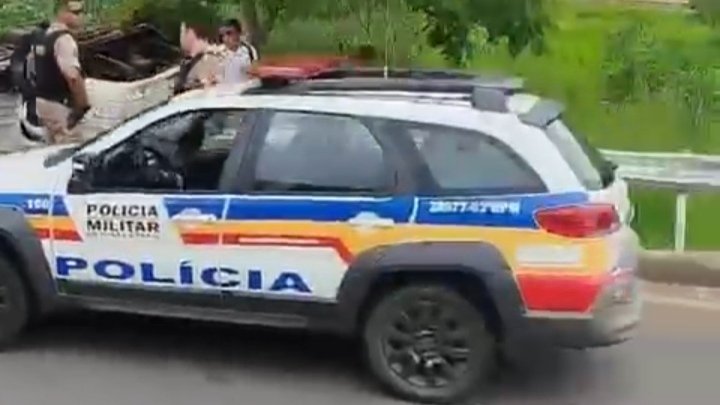 Curiosos se fizeram presentes no local, mas a Polícia Militar chegou rapidamente à cena do acidente.