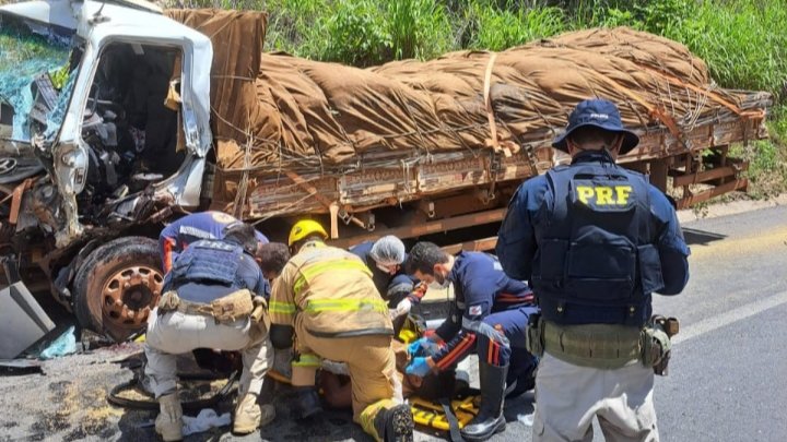 Em decorrência do impacto, o condutor do caminhão que colidiu na traseira do outro veículo ficou preso entre as ferragens.