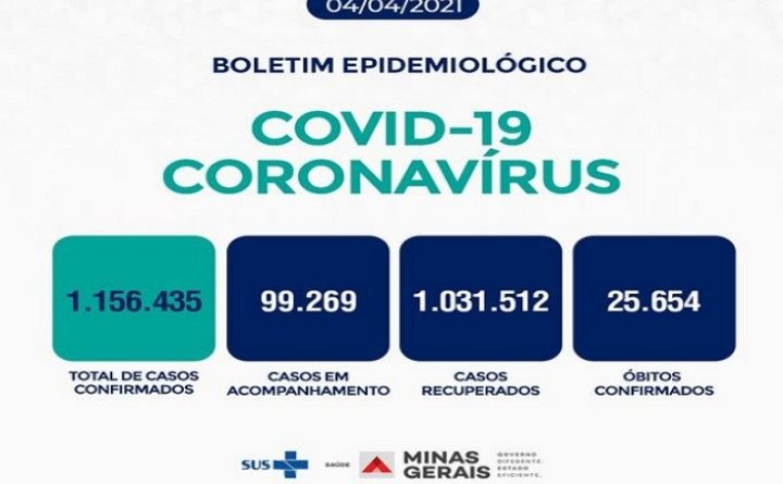 Minas Gerais chegou a 25.654 mortes por Covid-19, após a Secretaria de Estado da Saúde (SES) divulgar, na manhã deste domingo (4), a perda de 120 vidas nas últimas 24 horas.