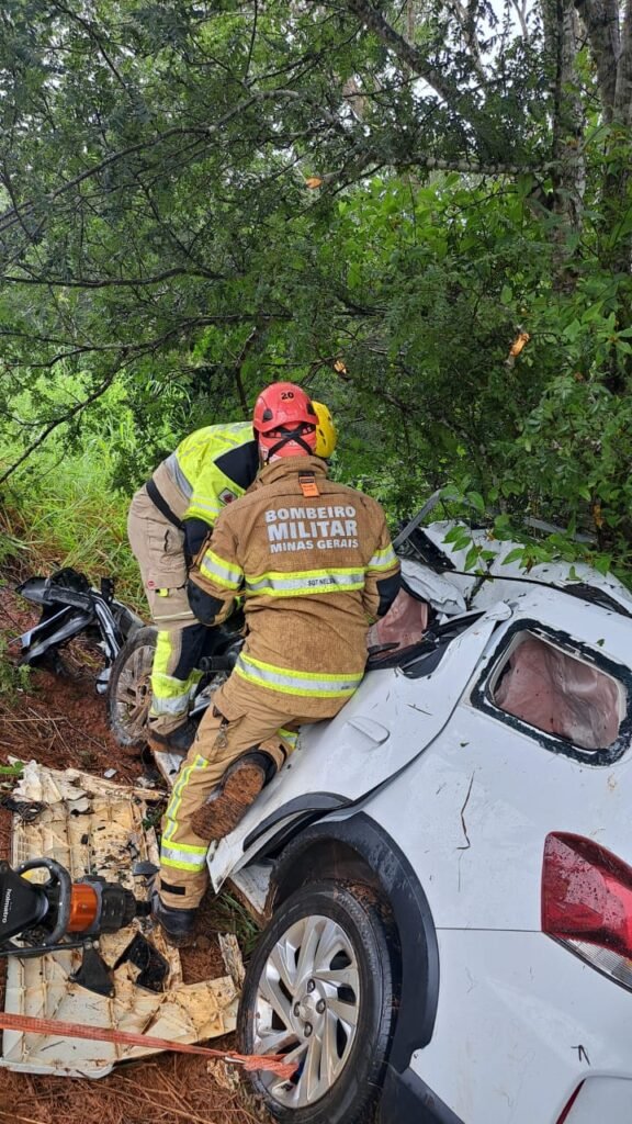 Na manhã desta quarta-feira, (25) de março de 2026, o Corpo de Bombeiros Militar de Minas Gerais foi acionado para atendimento de uma ocorrência de vítima presa às ferragens, envolvendo um caminhão e um automóvel, que colidiram frontalmente na rodovia MG-135, km 304, nas proximidades do município de Mirabela/MG.