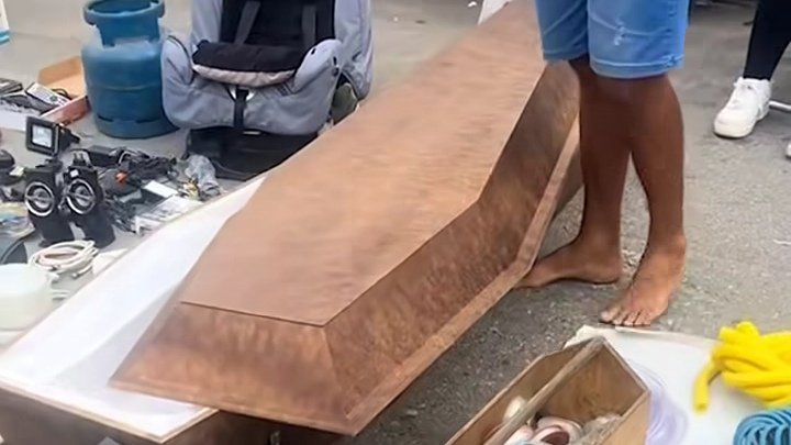 Tá muito fácil morrer no Rio de Janeiro, pois já estão vendendo caixão até na feira livre.