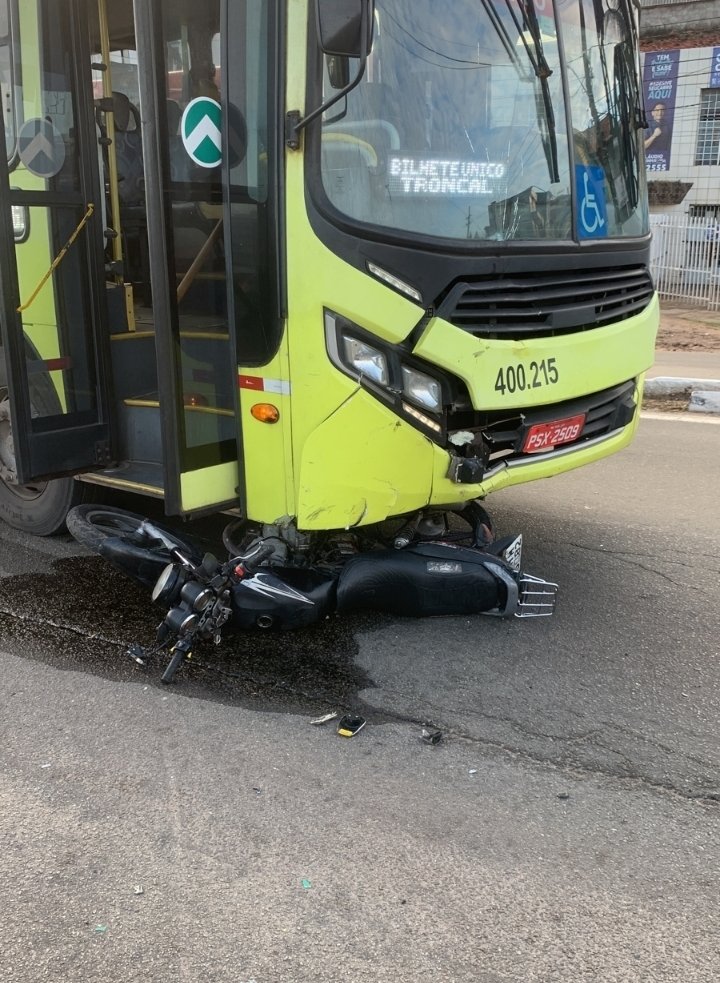 Testemunhas informou que a vitima furou o sinal e colidiu frentalmente cintra o ônibus, a vítima ia no sentido terminal da Praia Grande.