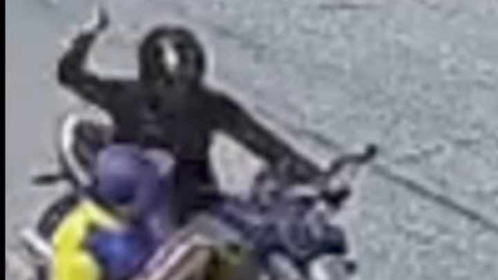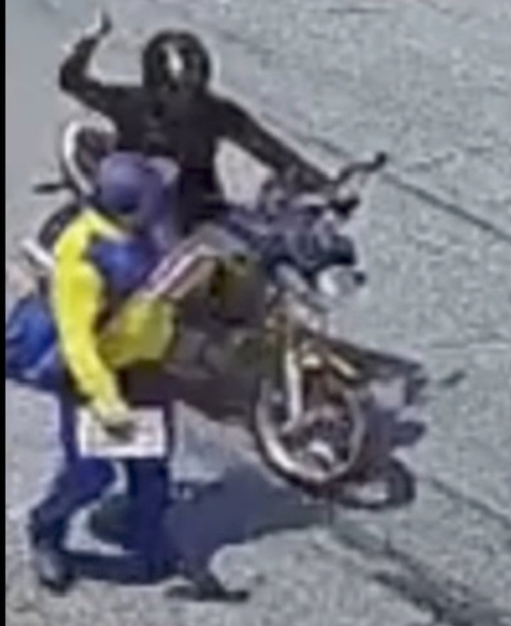 O motoqueiro fantasma da faca, que estava em uma motocicleta Suzuki sumiu, mas a Polícia Militar está procurando câmeras da região que possam identificar esse elemento e prender esse bandido.