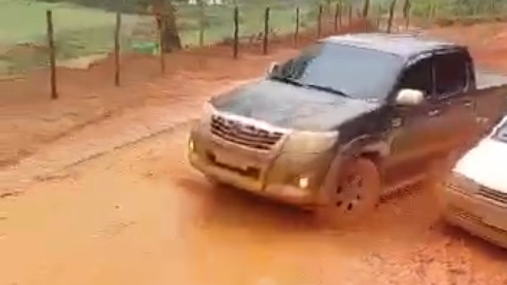O motorista de uma caminhonete Hilux tentou passar por uma estrada vicinal que liga Espera Feliz a Caparaó, mas acabou sofrendo um acidente. O fato aconteceu nesta quinta-feira (3). Ao acelerar o veículo na lama, a caminhonete derrapou, bateu na traseira de um Gol que estava atolado e seria puxado por outra caminhonete, e logo em seguida bateu em uma cerca e desceu por um barranco.