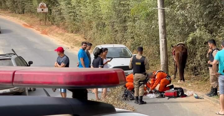 Esmeraldas MG,11 de junho de 2022. Na tarde deste sábado, por volta de 12:40, um homen de 60 anos foi atropelado quando andava a cavalo na Alameda Ipê Amarelo, o local é próximo ao Km-503 da rodovia BR-040, na RMBH, o motorista fugiu sem prestar socorro a vítima.