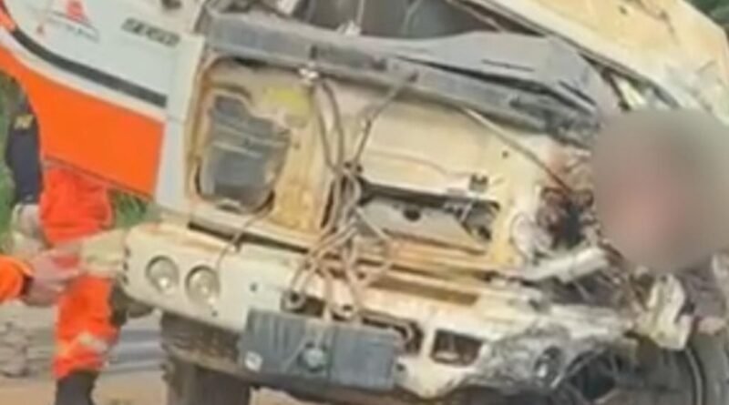 Um caminhão caçamba e uma carreta, também caçamba, bateram e o motorista do caminhão morreu preso entre as ferragens.
